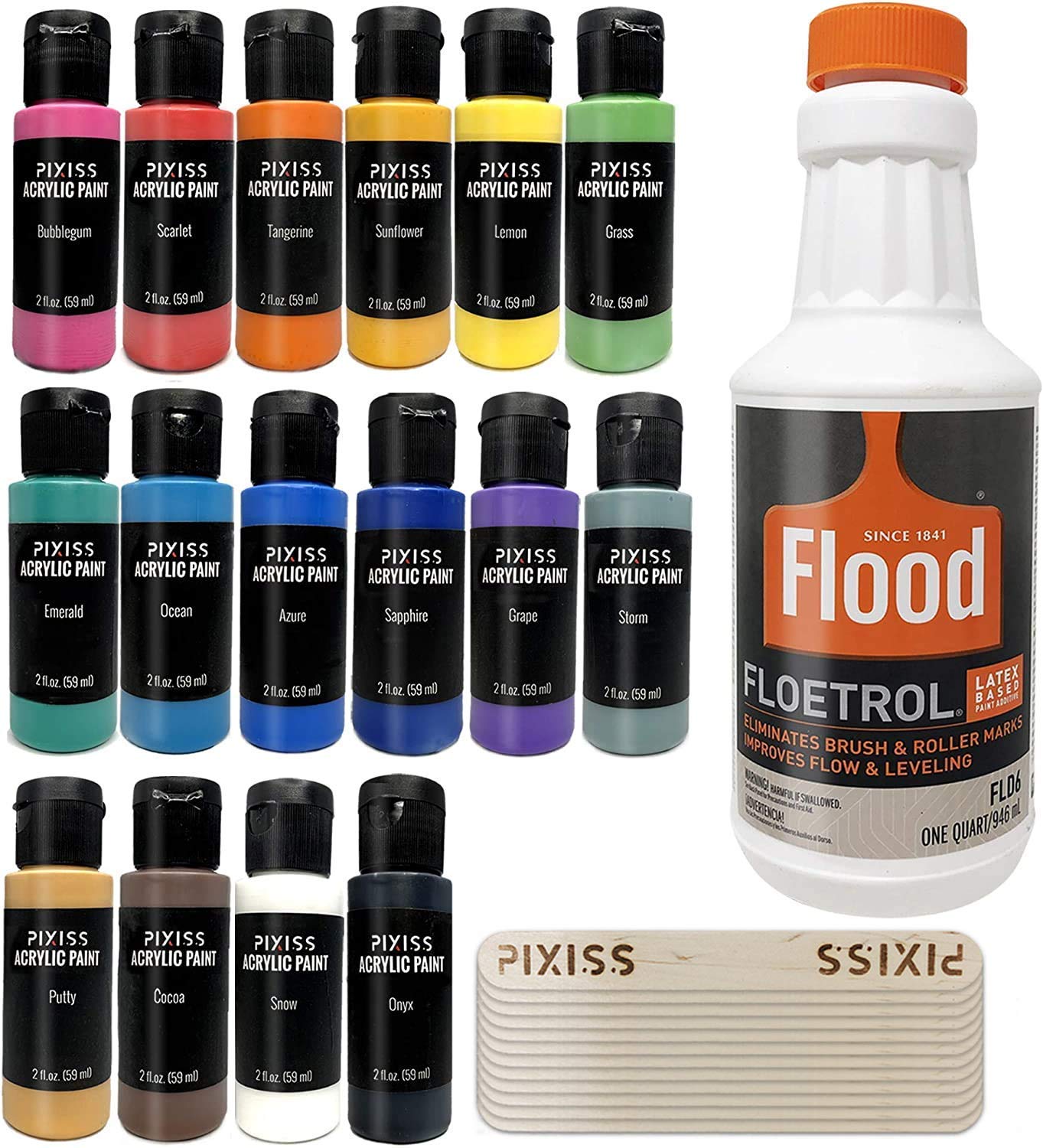 Amazon Com Floetrol For Acrylic Paint Pouring Kit Flotrol Acrylic Pour Medium Additive 16 Acrylic Pouring Paints 20 Pixiss Wood Mixing Sticks Arts Crafts Sewing